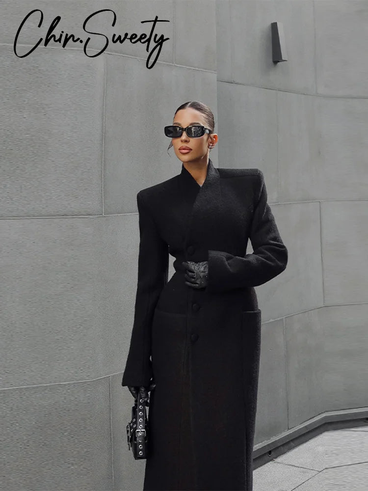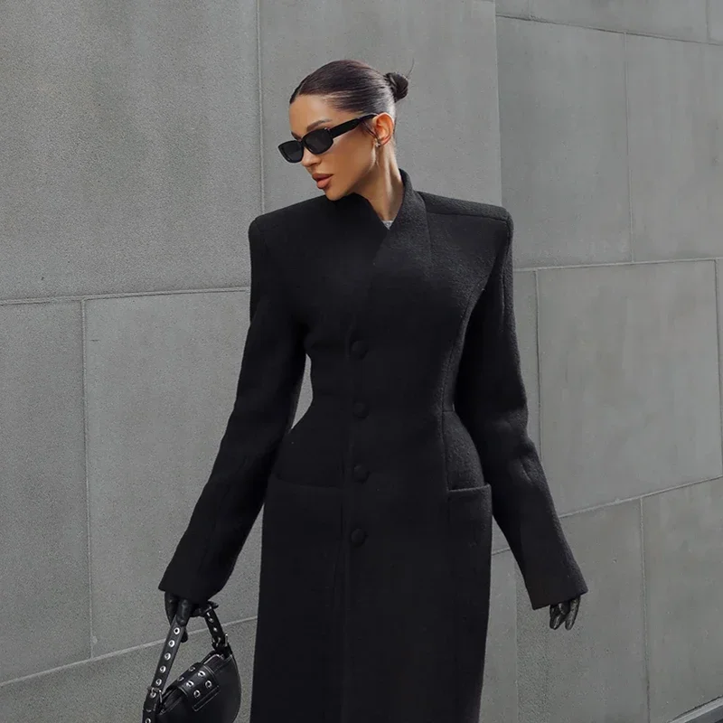 Elegância de Alto Padrão 2025 – Casaco Feminino Longo com Cintura Marcada