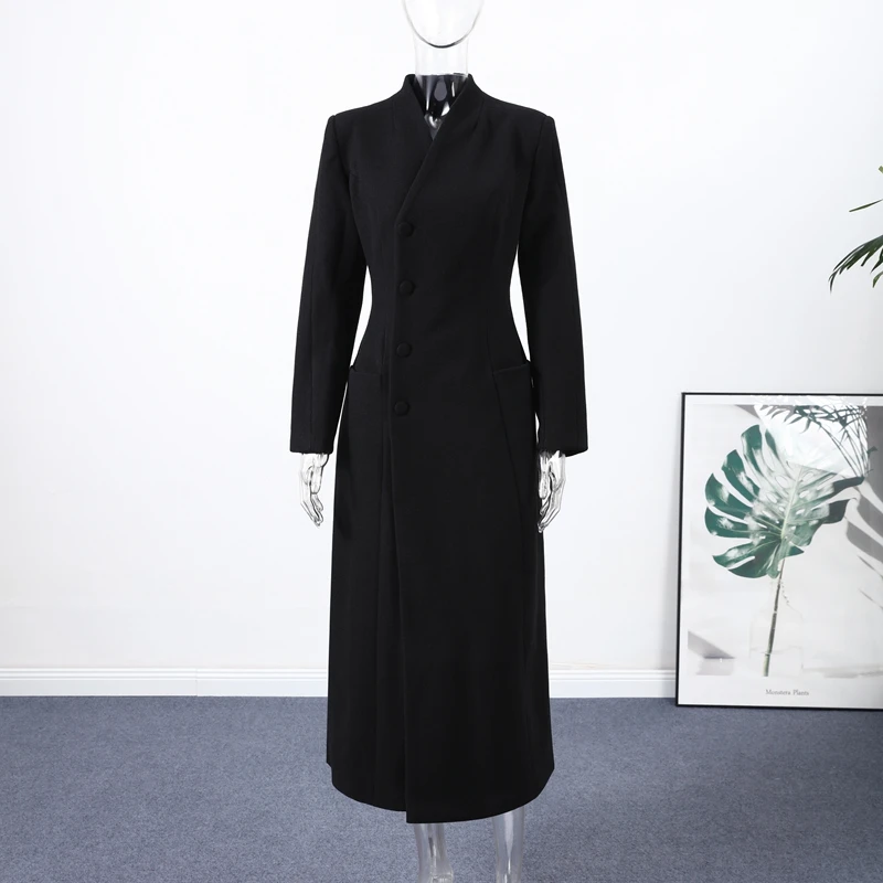 Confeccionado em poliéster de alta qualidade, o casaco oferece excelente caimento, durabilidade e conforto térmico para as estações de outono e inverno. O fechamento single breasted com botões elegantes e a gola dobrável (turn-down collar) reforçam o estilo clássico, enquanto a modelagem slim e regular valoriza a silhueta feminina de forma natural.